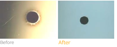 銅の微粒子にて欠損部分を修復
